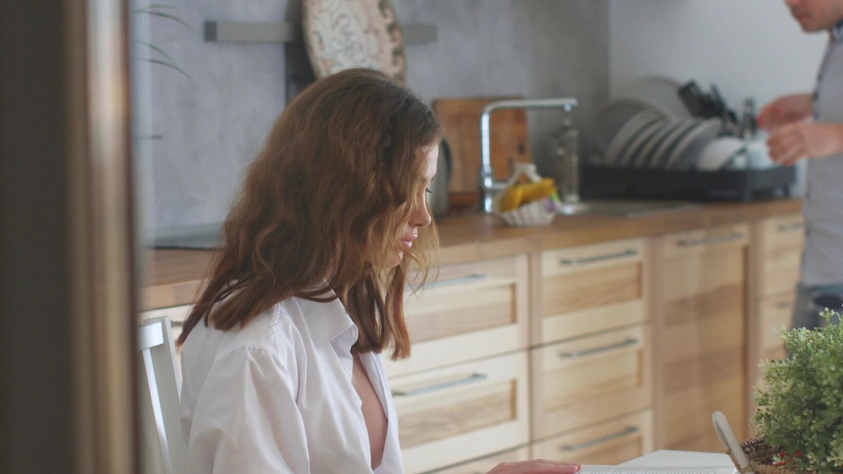 Молодая пара захотела секса и прямо на кухне устроила страстный секс. Минет, нежный куни и трах в анал, от которого русская девушка с большими стоящими сиськами сладко стонет.