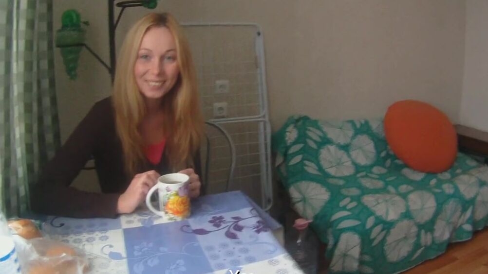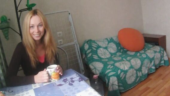 Умелый пикапер снял русскую студентку. Пригласив к себе в гости, развел её на классный секс. Юная блондинка разделась и, сделав, минет, отдалась ему, постояла раком, попрыгала верхом и насладилась куни.