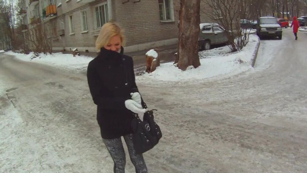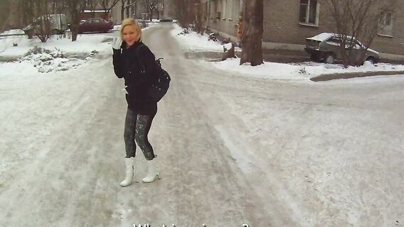 Прохладным днем, парень познакомился с блондинкой на улице и пригласил её к себе домой. Его сисястая незнакомка была хороша, и он трахнул её, дал пососать член и спустил сперму на сиськи.