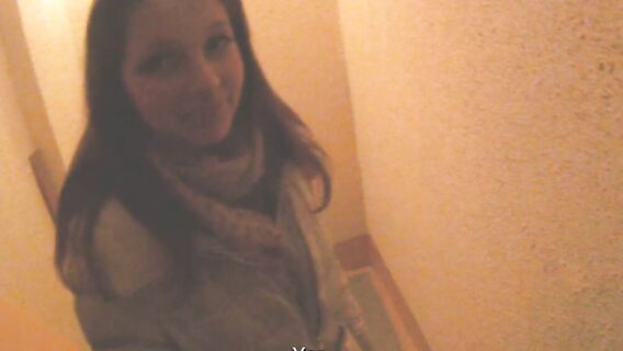Молодая русская соседка потерявшая ключи от квартиры согласилась на помощь молодого парня. Он предложил ей деньги и трахнул в подъезде, поставив её рачком у перил и кончив на маленькую грудь.