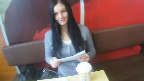 Случайное знакомство с приятным парнем в кафе торгового центра, быстро превращается в сексуальное приключение. Молодая студентка занялась сексом с презервативом с умелым пикапером и удовлетворила его.