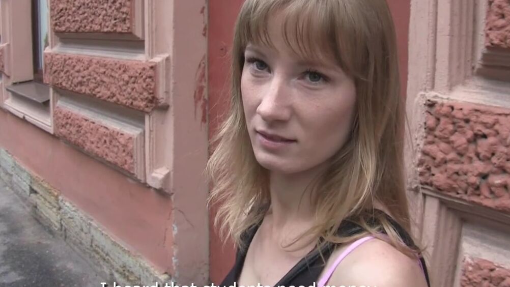 Шатенка, идущая по улице, попала в цепкие руки порно агента. Придя на кастинг, тощая девушка в черной майке согласилась на секс за деньги и удовлетворила этим похотливого мужика своей киской.