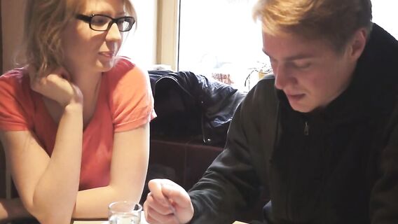 Его подкат к очкастой русской девушке оправдал себя на все 100%. Она привела его к себе и после кунилингуса для неё и минета для него у них случился жаркий секс, который закончился спермой на её лице.