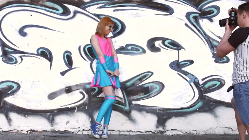 Рыжая неформальная телка в очках и гетрах закончив удачную фотосессию решает не отпускать русского фотографа и ебется с ним, страстно и долго, сменяя позу за позой, желая получить камшот на язык.