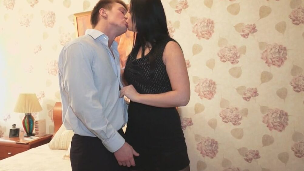 Русская черноволосая шлюха приехала по вызову к приятному молодому парню и он ей так понравился, что она старалась как могла и качественный секс закончился мощным камшотом на её гладкий лобок.