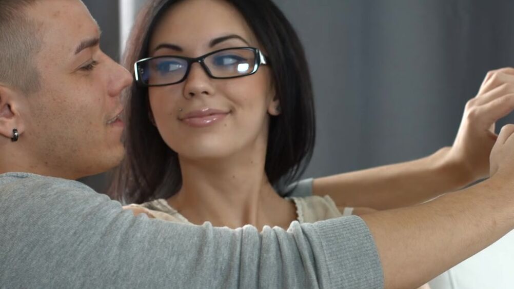 Каждый раз, оставаясь наедине с юной русской девчонкой в очках, парень начинает секс с оральных ласк, а после проникновения в киску, приучает её к аналу, от которого она стонет, получая наслаждение.