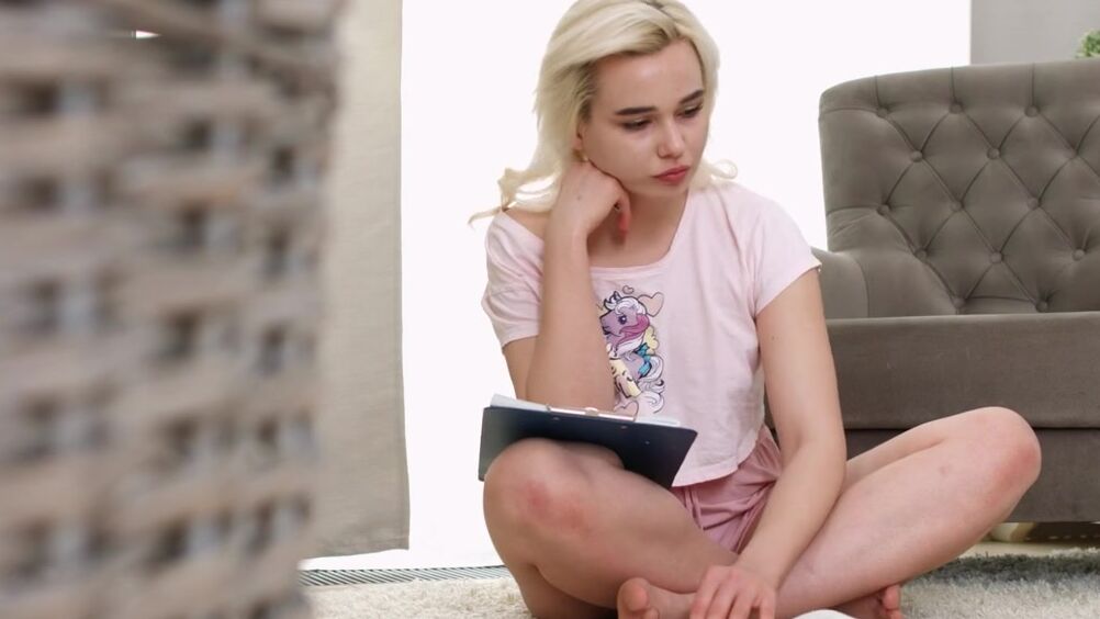 Молоденькая однокурсница просит парня помочь с учебой, но кажется это не единственная её цель, парень раздел блондинку, трахнул её ротик и бритую писечку, а достигнув оргазма, кончил ей на лицо.